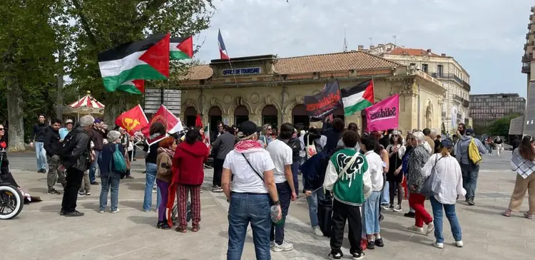 Des dizaines de personnes se sont rassemblées ce samedi 11 avril sur la place de la Comédie à Montpellier afin de protester contre la proposition de loi de Caroline Yadan. « C’est une loi liberticide », clame Ibtissame, porte-parole du collectif BDS Montpellier, en marge d’un rassemblement en opposi