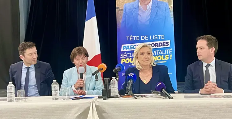 La cheffe de file du Rassemblement national est venue donner ses gages dans cette dernière ligne droite de la campagne des municipales. « Vous avez deux avocates à cette table. Je rappelle que je suis présumée innocente puisque j’ai fait appel », clarifie la cheffe de file du Rassemblement national