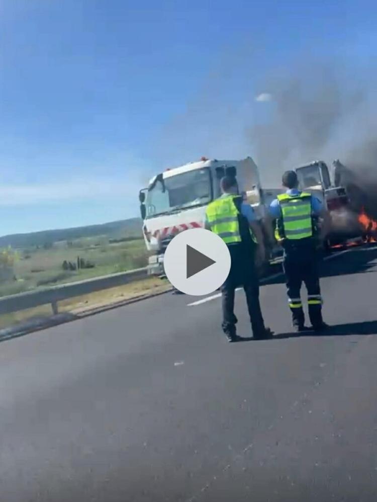 Un véhicule est en feu sur l’autoroute A9, ce vendredi 17 avril, aux alentours de 16h, en direction de Barcelone, entre Narbonne et Perpignan, au point kilométrique 213, 6km après Sigean. Le trafic n’est pas loin d’être interrompu. Un camion qui tracte un engin de chantier a pris feu, plus précisément sa remorque. Prudence si vous êtes dans le secteur, la zone n’est pas encore sécurisée, les forces de l’ordre sont sur place. Vinci autoroutes indique de bien se décaler sur la voie la plus à gauche, le feu n’est pas maîtrisé.